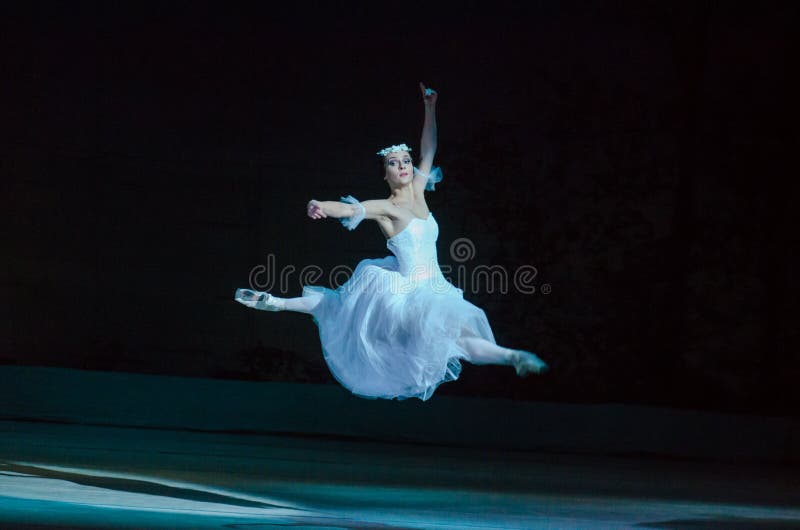 DNIPRO, UCRÂNIA – 19 de novembro de 2017: Ballet clássico Giselle interpretado por membros do Teatro de Ópera e Ballet de Dnipro.