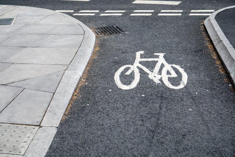 Bicycle road sign painted on the asphalt road. R r