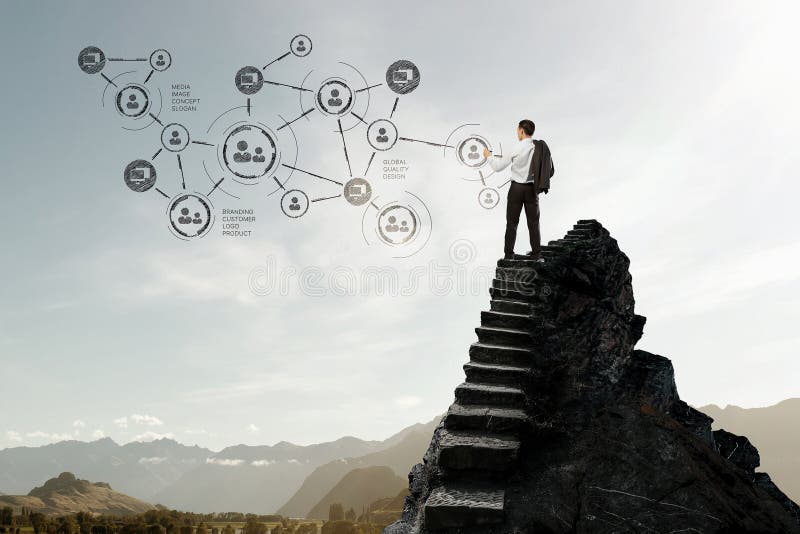Eu tenho um grande plano Meios mistos. Ideia traseira da estratégia do sucesso comercial do desenho do homem de negócios Meios mistos