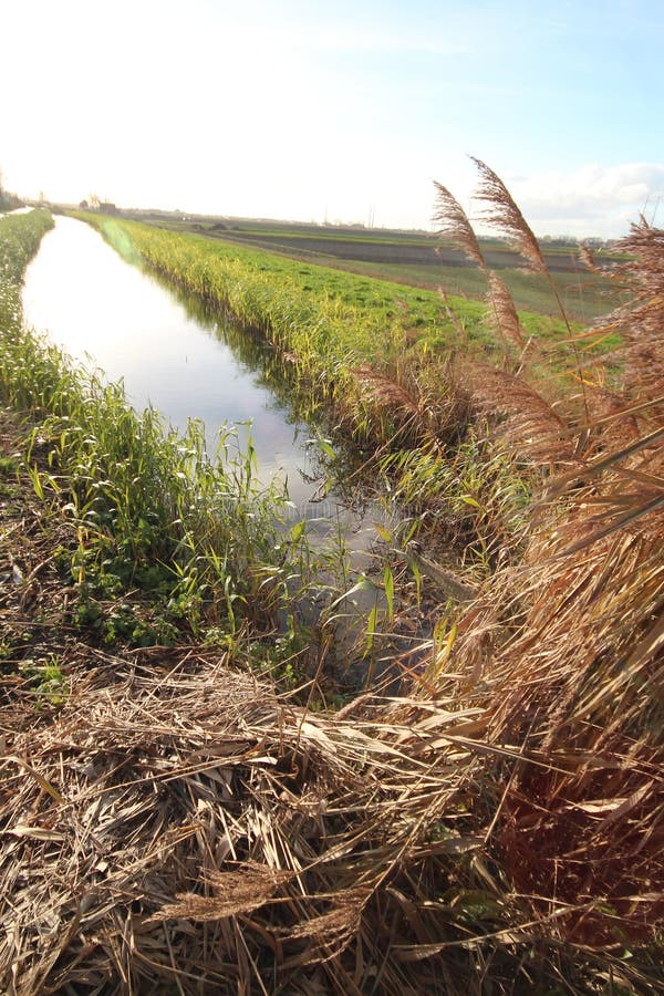 Fonte de rio Rotte que dirige a Rotterdam em Moerkapelle no sol nos Países Baixos