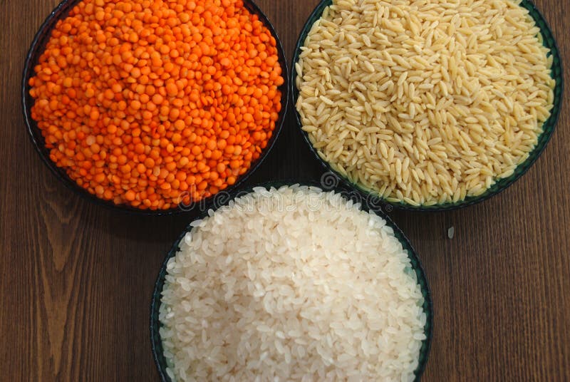 Cereais e pulsos Arroz, lentilhas, e macarronetes da cevada