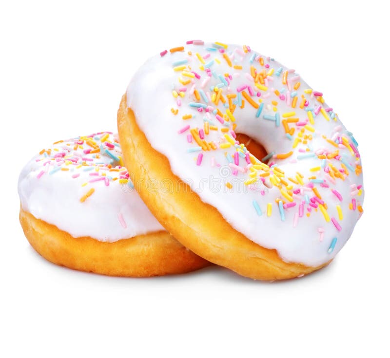 Donuts isolados sobre fundo branco. Donuts glaceados saborosos em close-up sobre fundo branco