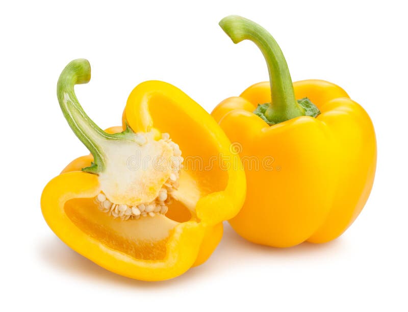 Pimento amarelo fatiado sobre fundo branco