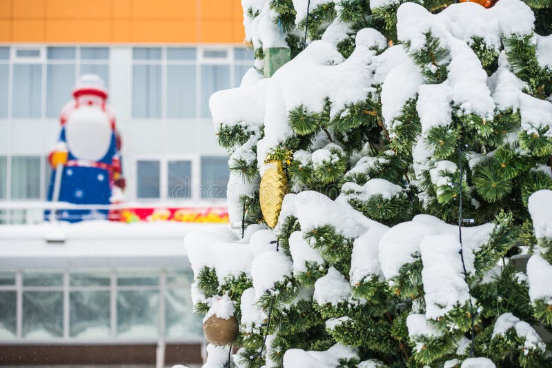 Colisão do ouro. Árvore de Natal do ornamento do cone do pinho do ouro sem a neve