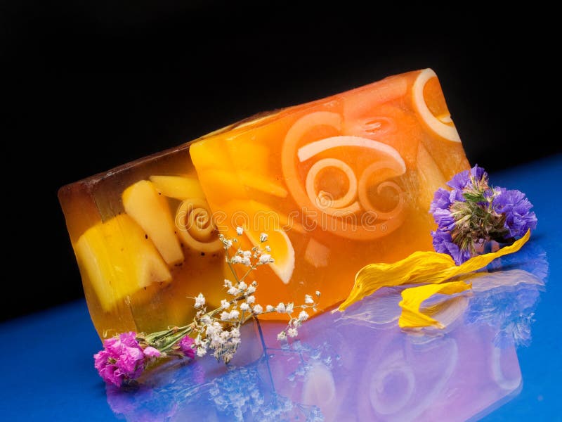Sabão com flores. Sabão com as flores no fundo preto