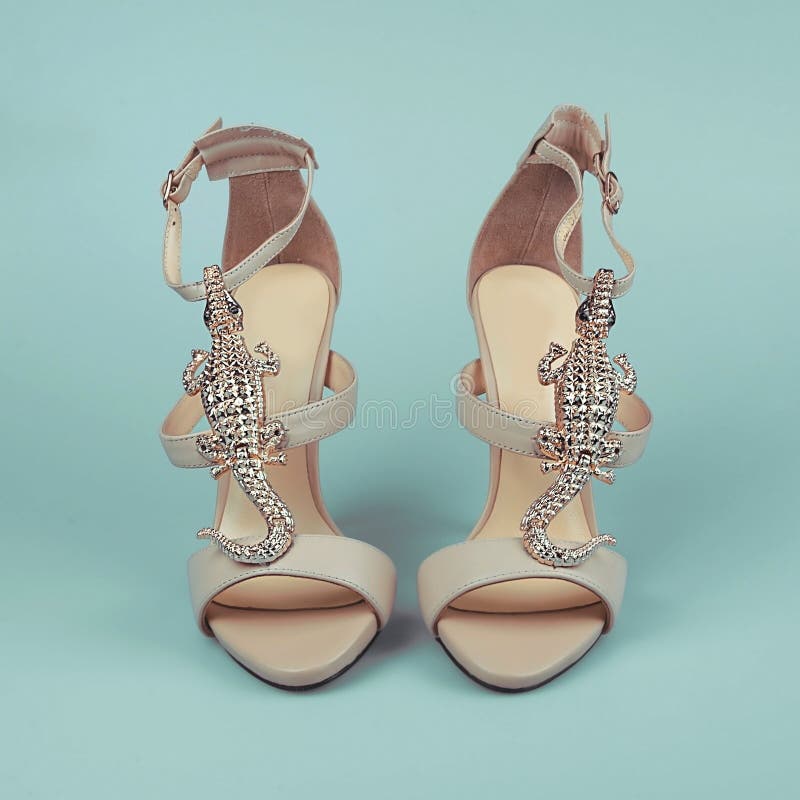 Sapatas cor-de-rosa fêmeas sobre o azul