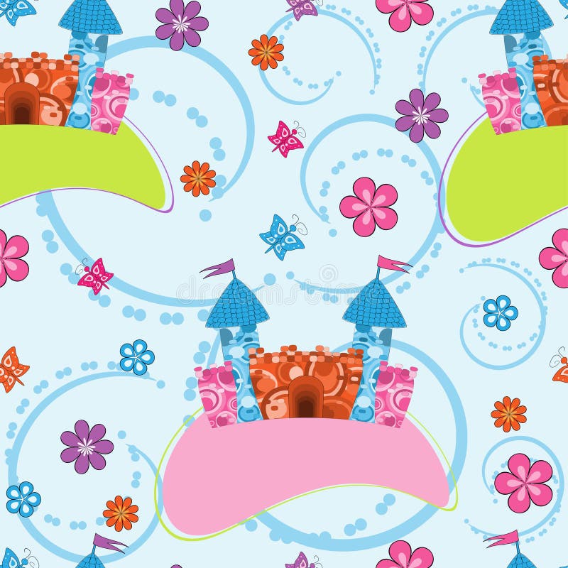 Fundo abstrato com castelo de desenho animado. Padrão contínuo com castelo de desenho animado