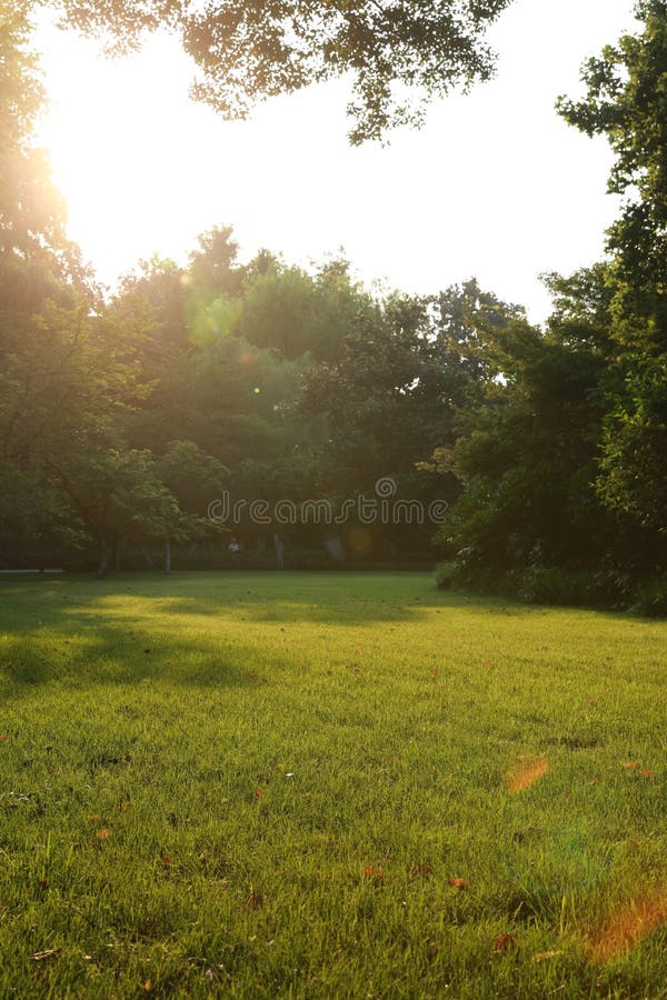 Grama verde e árvore, close up disparado na grama verde. Fundo da grama verde e da árvore no parque do xihu, profundidade de campo rasa
