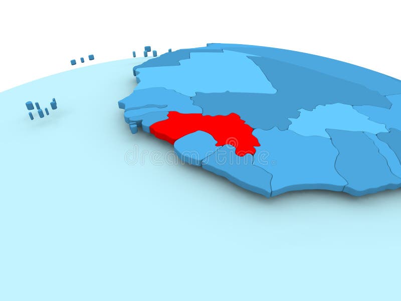 Guiné no globo político azul. Mapa da Guiné no vermelho no globo político azul ilustração 3D