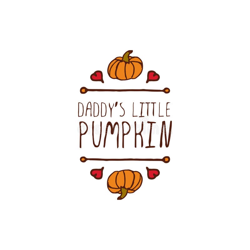 Elemento handdrawn do outono do vetor com texto. Elemento tipográfico Mão-esboçado com abóbora, folhas de bordo e texto no fundo branco Daddys pouca abóbora