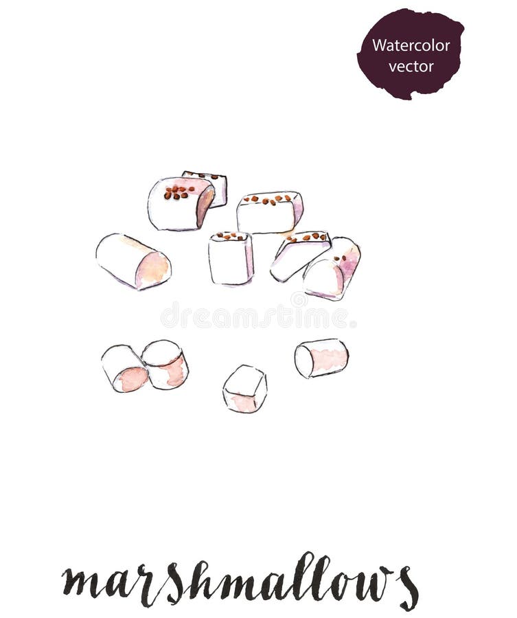 Marshmallows brancos doces, mão tirada - ilustração do vetor da aquarela