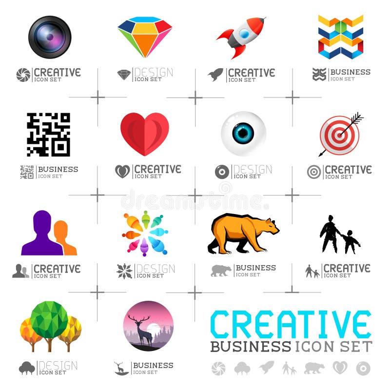 Ícones Criativos de Negócios. Uma coleção de ícones e símbolos criativos para negócios. Ilustração vetorial.