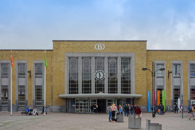 Estação de trem em Bruges. BRUGES, BÉLGICA - CERCA DO JUNHO DE 2016: Estação de trem do cano principal de Bruges