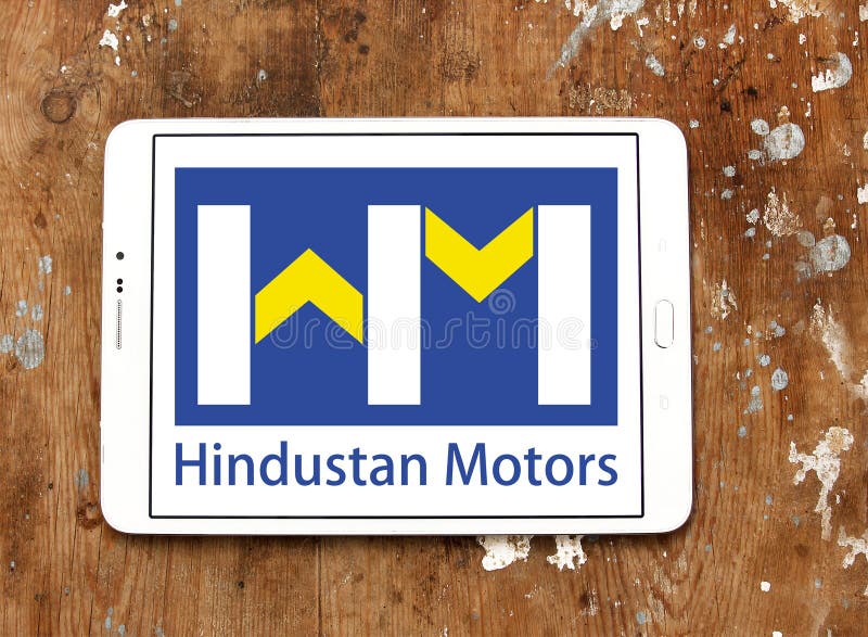 Logótipo da Hindustan Motors. Logótipo da marca Hindustan Motors num tablet Samsung sobre um fundo de madeira