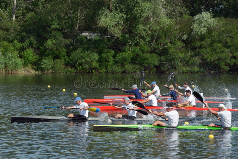 Remo. Dnepropetrovsk, Ukraine - May 29, 2013: Kayak racing during Ukrainian paddling championships in Dnepropetrovsk, Ukraine on May 29, 2013
