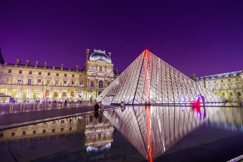 PARIS - 6 DE SETEMBRO: O Palácio do Louvre e a Pirâmide em 6 de setembro de 2014 em Paris, França. O Louvre, ou Museu do Louvre, é um dos maiores museus do mundo e um monumento histórico.