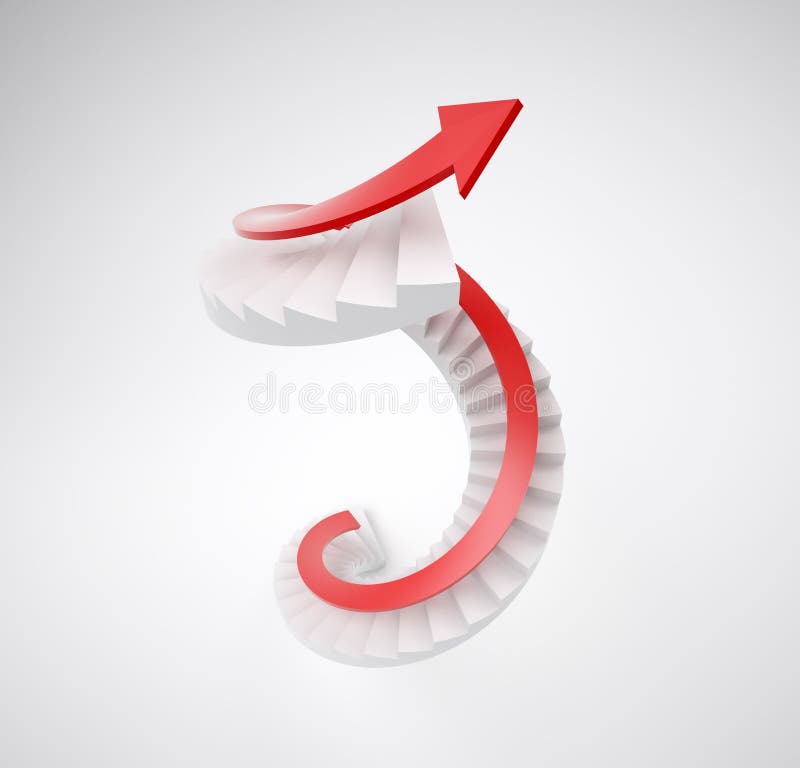 Escada em espiral com uma seta 3D vermelha