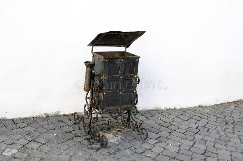 Lixeira forjada ao ar livre. Limpeza. Artesanal imagem de stock Lixeira forjada ao ar livre. Limpeza. Artesanal