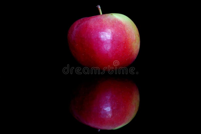 Gota de água na superfície brilhante de uma maçã vermelha sobre fundo preto fotografia de stock Gota de água na superfície brilhante de uma maçã vermelha sobre fundo preto