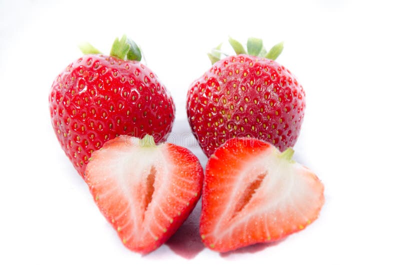Morango doce super; s com partes superiores e exibição dois verdes fora. A morango de jardim ou simplesmente morango; O ananassa de Ã- da Fragaria é uma espécie híbrida extensamente crescida do gênero Fragaria, conhecida coletivamente como as morangos É cultivado no mundo inteiro para seu fruto A fruta é apreciada extensamente para seus aroma característico, cor vermelha brilhante, textura suculenta, e doçura É consumido nas grandes quantidades, frescas ou em alimentos preparados como