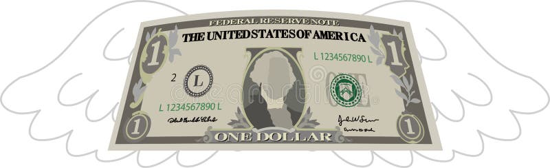 Nota de 1 dólar deformada com penas. Esta é uma ilustração da nota deformada de 1 dólar