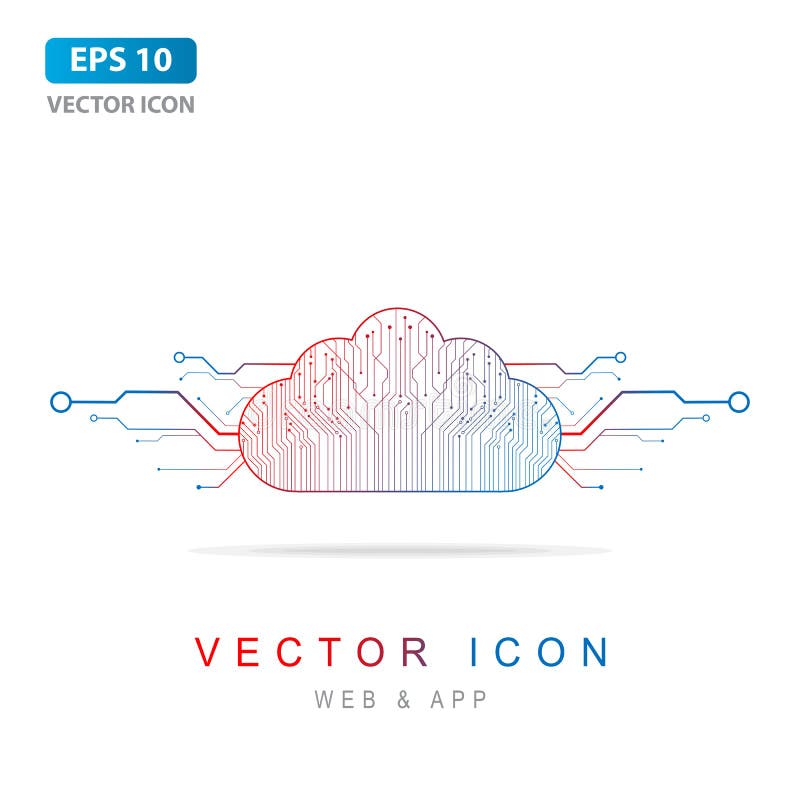 Nuvem com Linhas de Circuito Conectadas. Computação em nuvem, Conceito de Computação em Nuvem. Computação em nuvem, Conceito de Computação em Nuvem, fundo de conceito de internet de tecnologia de computação em nuvem. Ilustração vetorial.