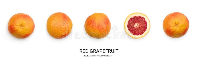 Toranja vermelha com casca alaranjada. Toranja vermelha inteira com o close up da casca alaranjada Seção do fruto agridoce suculento Ruby Citrus cortado