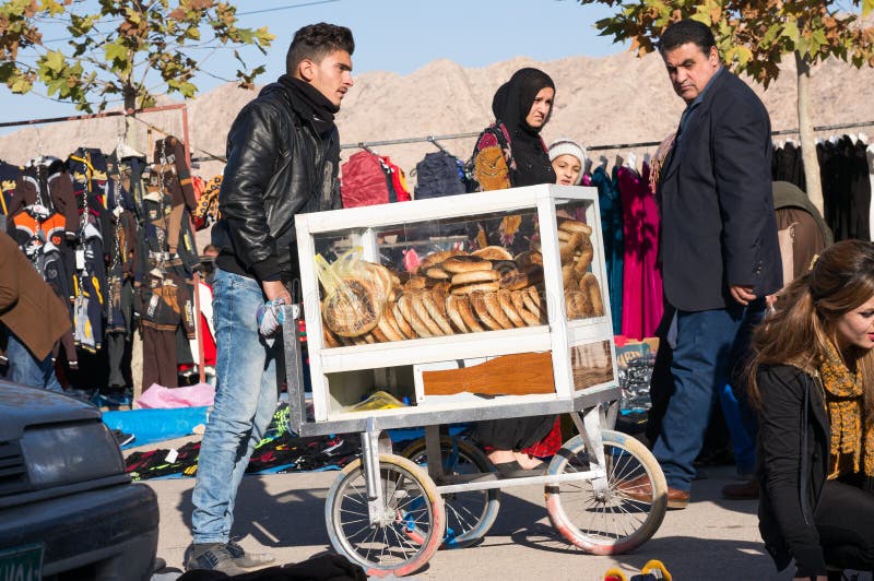 Grátis com teste Vendedor de Bagels Iraquiano com um Carrinho imagem de stock royalty free Vendedor de Bagels Iraquiano com um Carrinho